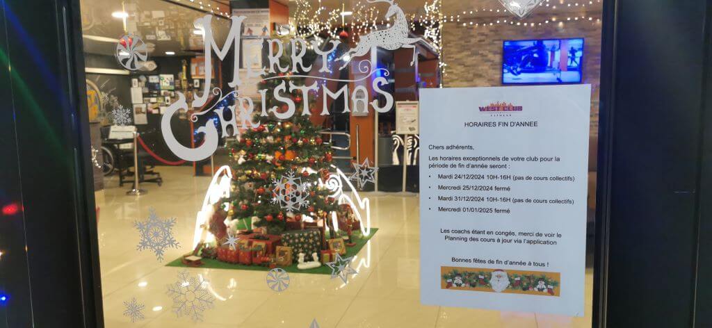 Les horaires exceptionnels de votre club pour la période de fin d’année seront :