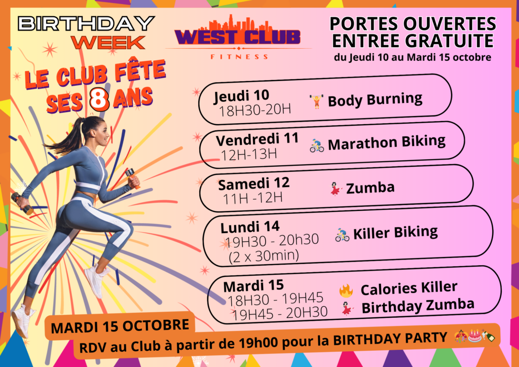 Les jours anniversaire : 6 jours pour découvrir le club gratuitement, du 10 au 15 octobre
