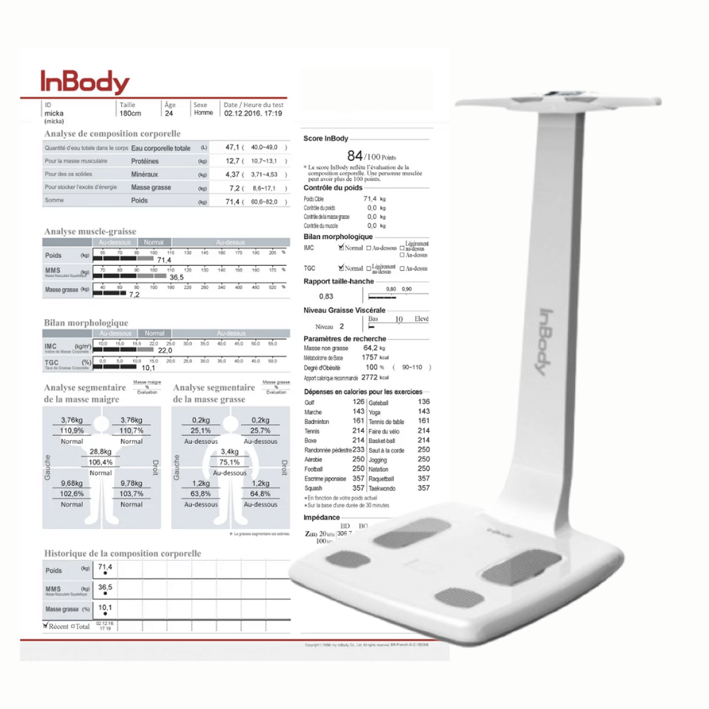 L’InBody est un service proposé par la salle de sport pour analyser votre composition corporelle. La première utilisation est incluse dans votre abonnement. Si vous souhaitez continuer à réaliser des analyses régulièrement, vous pouvez prendre rendez-vous avec un coach pour bénéficier d’un suivi personnalisé et adapté à vos objectifs