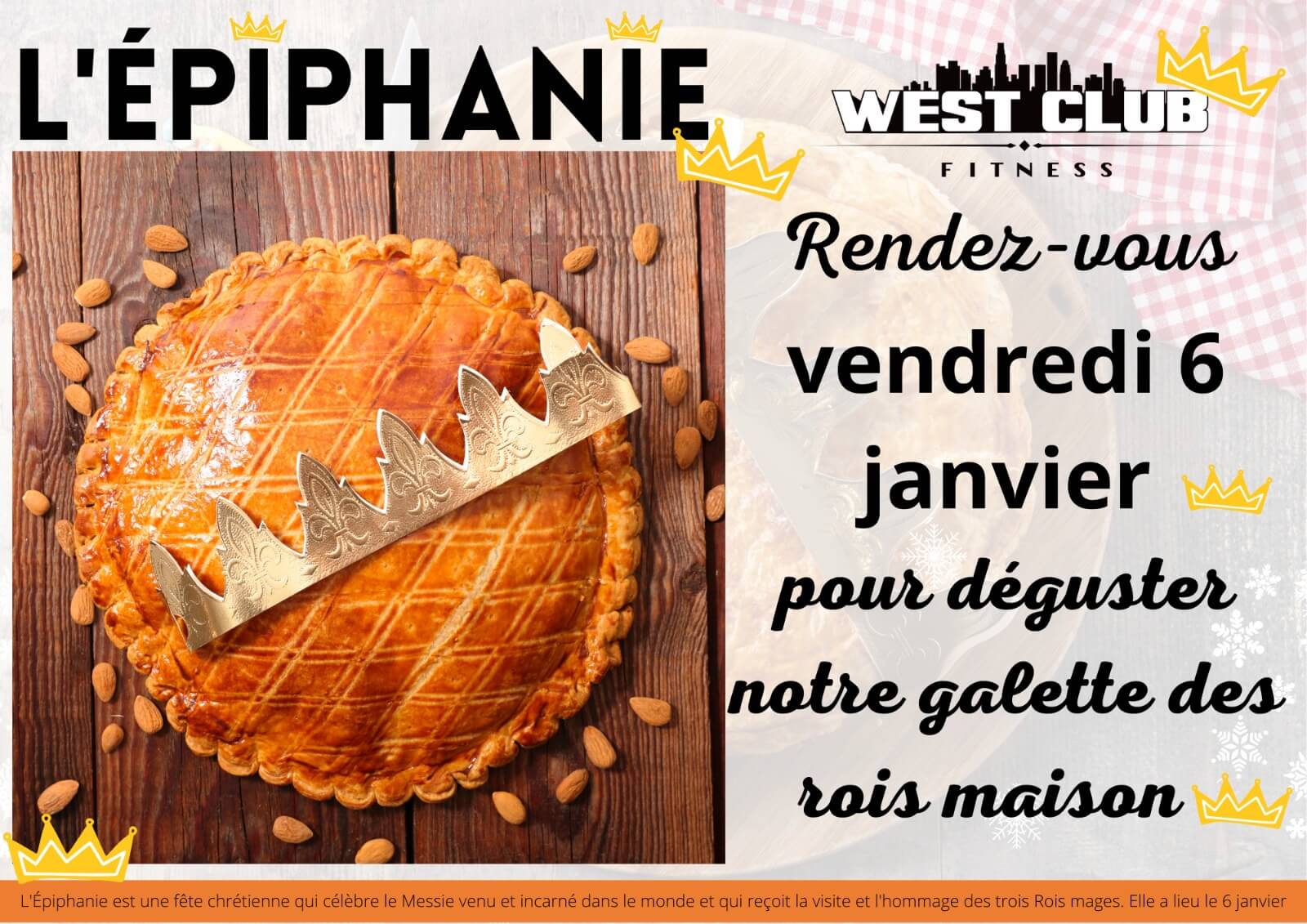 Rendez-vous vendredi 6 janvier , jour de l’épiphanie pour déguster notre galette des rois maison